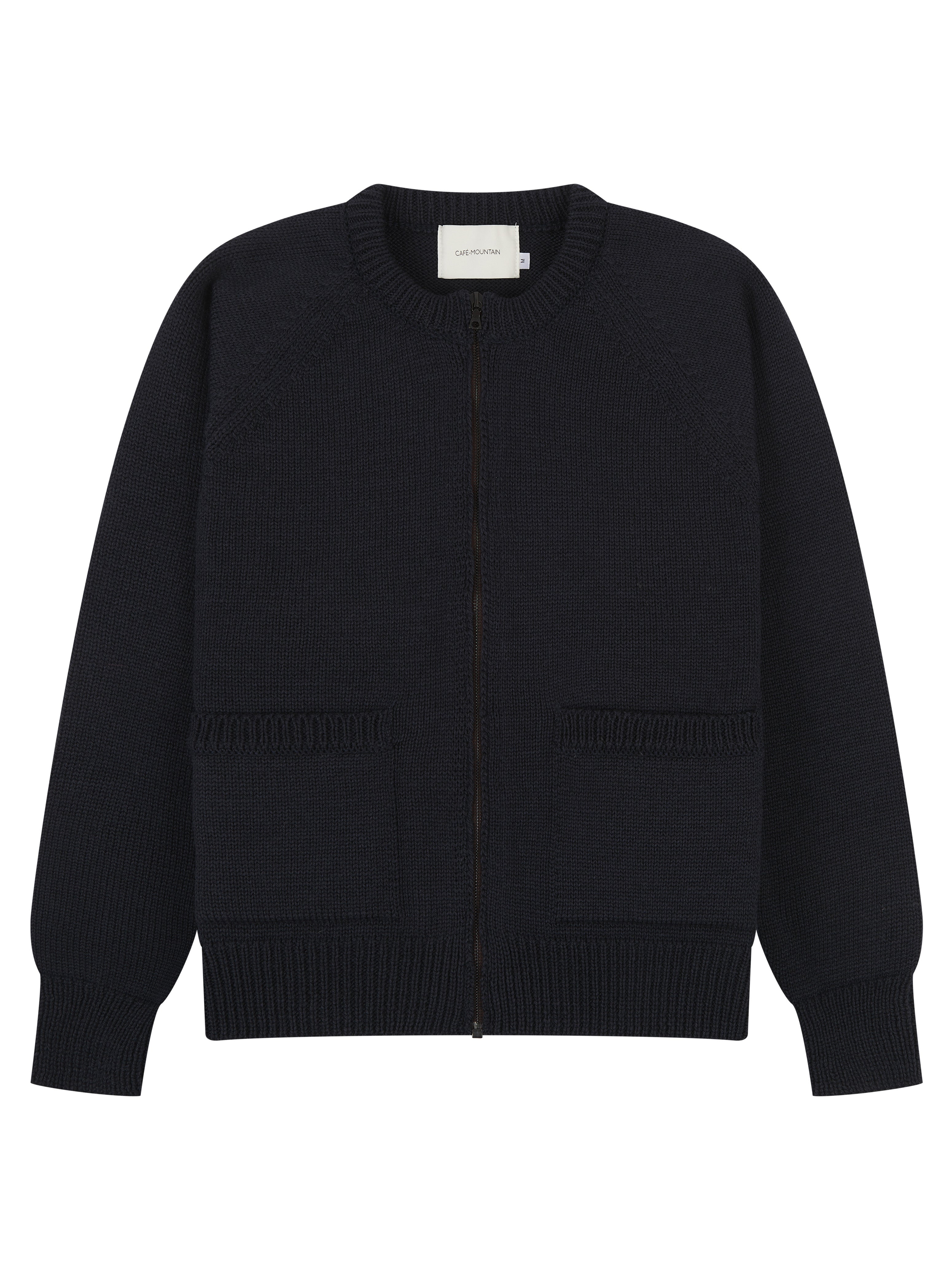Cafe Mountain Zip Through Raglan Knit - Navy Dust
