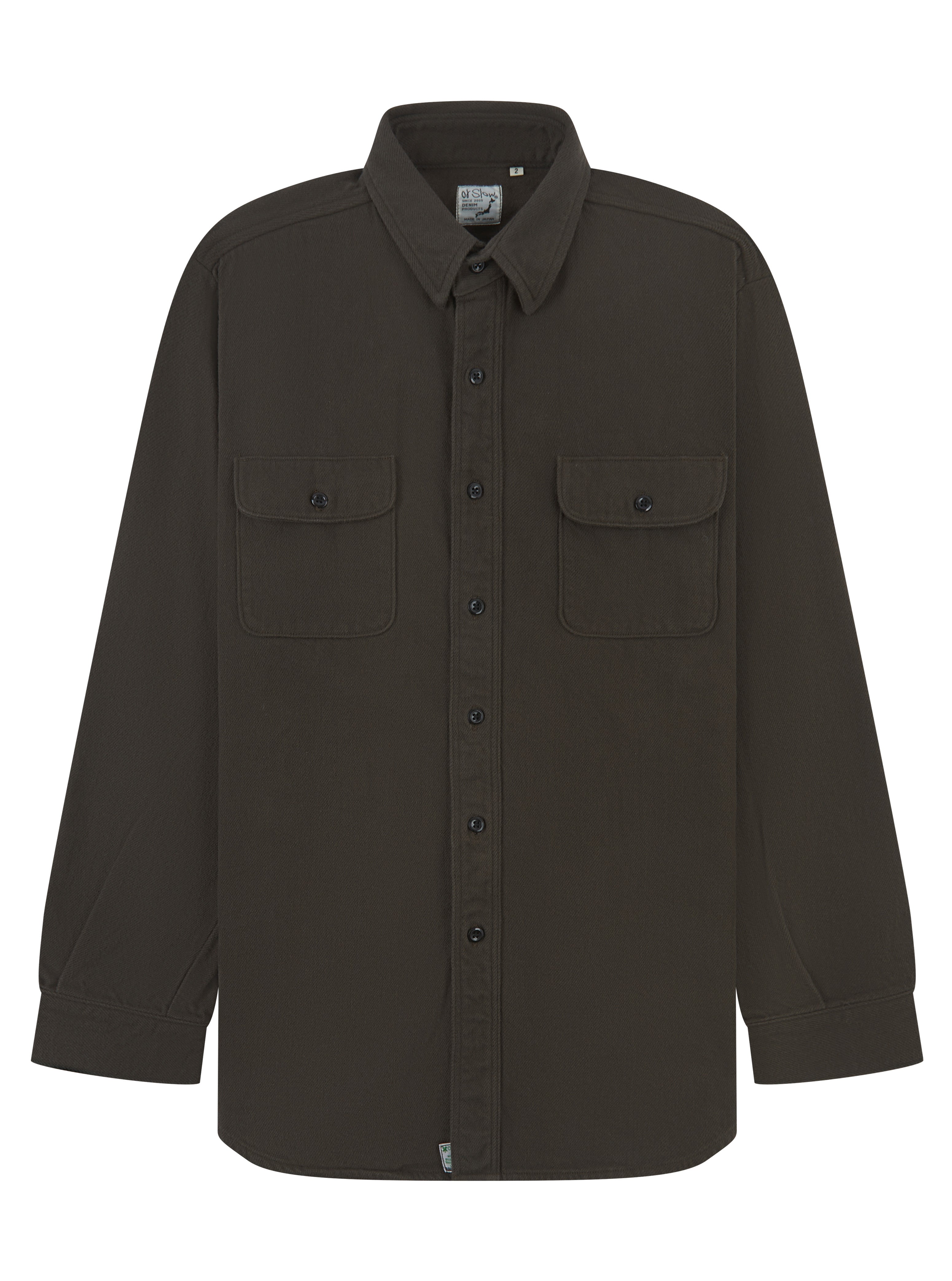 A warm, understated essential from orSlow. Crafted in Japan from 100% cotton. The relaxed fit makes it ideal for layering, while twin chest pockets and tonal stitching keep the look grounded in classic workwear tradition.