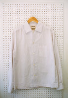 The Long Sleeve Shirt offers a loose fitting, boxy silhouette. Inspired by classic menswear tailoring this shirt has a modern take with a straight, cropped hem, inverted pleat on the back, and oversized buttons. This can be dressed up or down beautifully with a tie or opened camp collar.